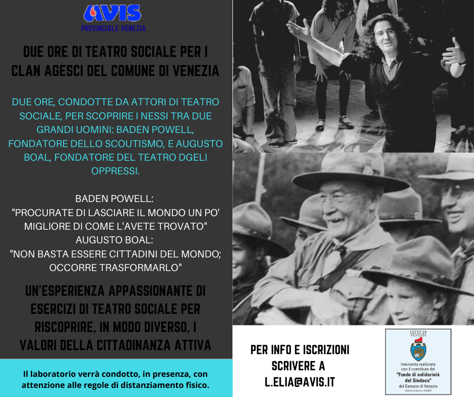 Ecco nascere, allora, una meravigliosa attività ideata da Laura Elia per AVIS provinciale Venezia , grazie al al bando per la concessione di contributi all’associazionismo locale destinati alla realizzazione di azioni finalizzate a migliorare la coesione sociale in Comune di Venezia, di due ore destinata a tutti i clan Agesci che ne faranno richiesta.